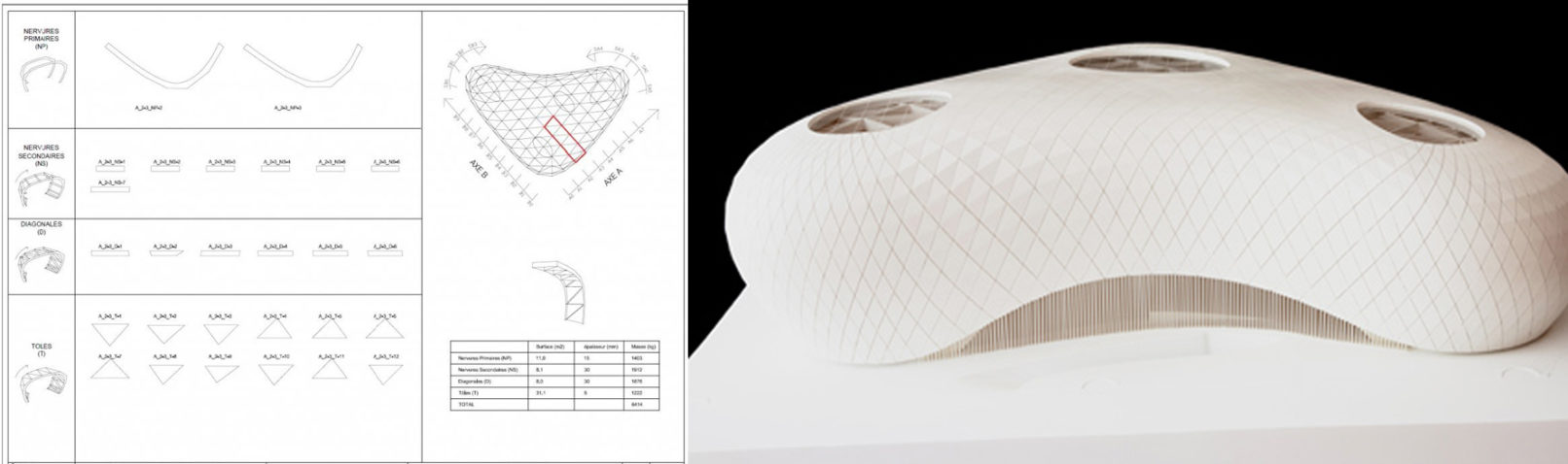 To quickly and dynamically draw these soft-shaped pavilions, their geometry was generated and optimized by our 4-member team with Rhinoceros and Grasshopper scripting, so that the structural topology could be easily reconfigured for the five pavilions of different dimensions. The 3D models were then exported to allow for structural calculations and analysis with a very smooth workfow. The construction drawings were then directly generated from the Rhinoceros model, each pavilion being entirely fabricated using flat packed steel sheets.