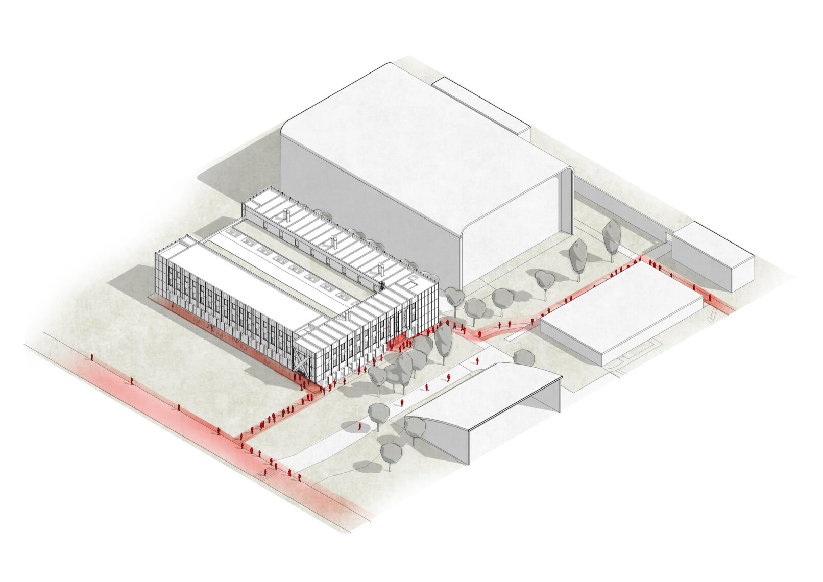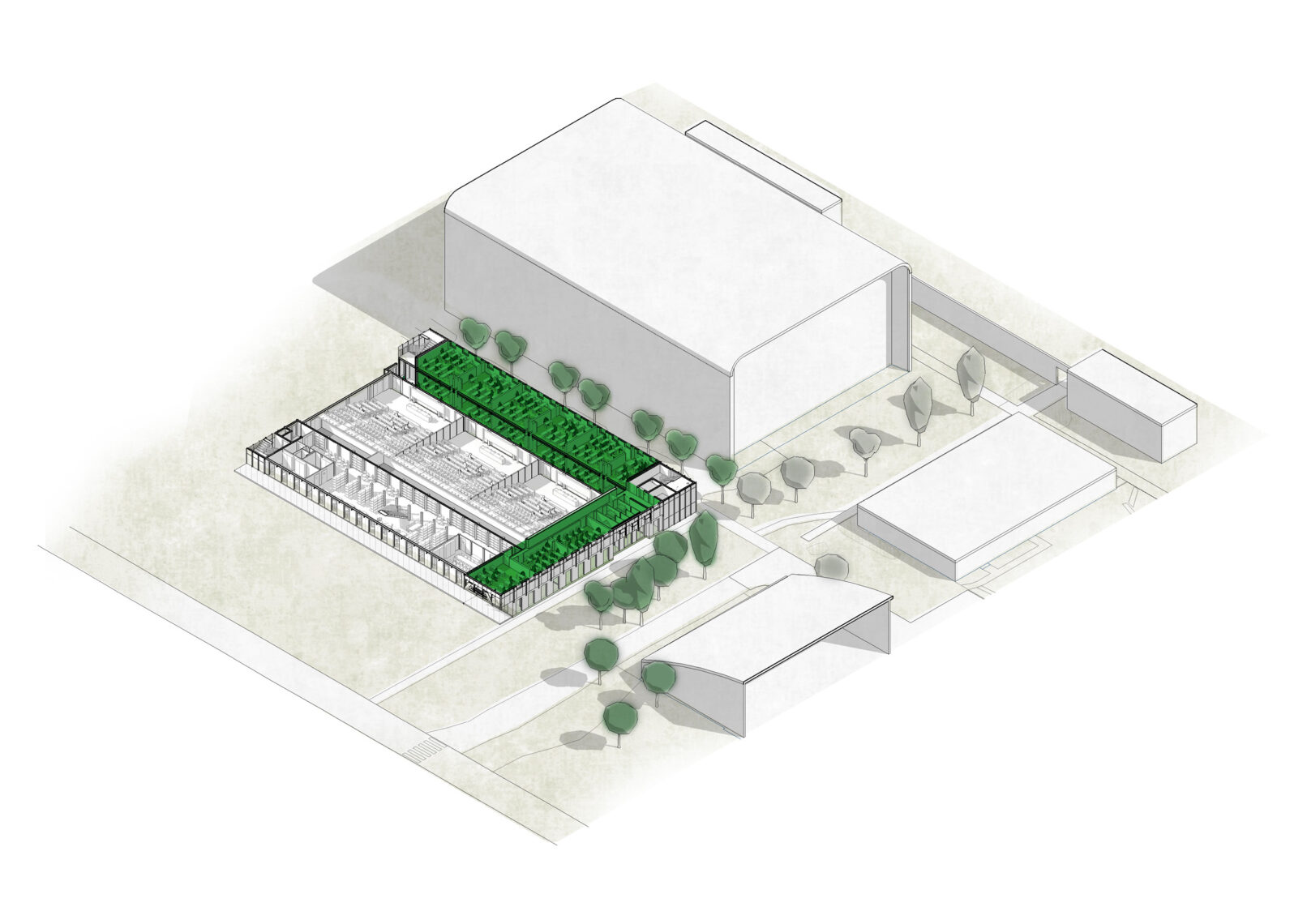 Ce projet, classé premier sur les critères de qualité architecturale, technique et environnementale, n’a pas été retenu. Il demeure néanmoins une contribution importante à notre réflexion sur les bâtiments publics frugaux, réversibles et résilients.
