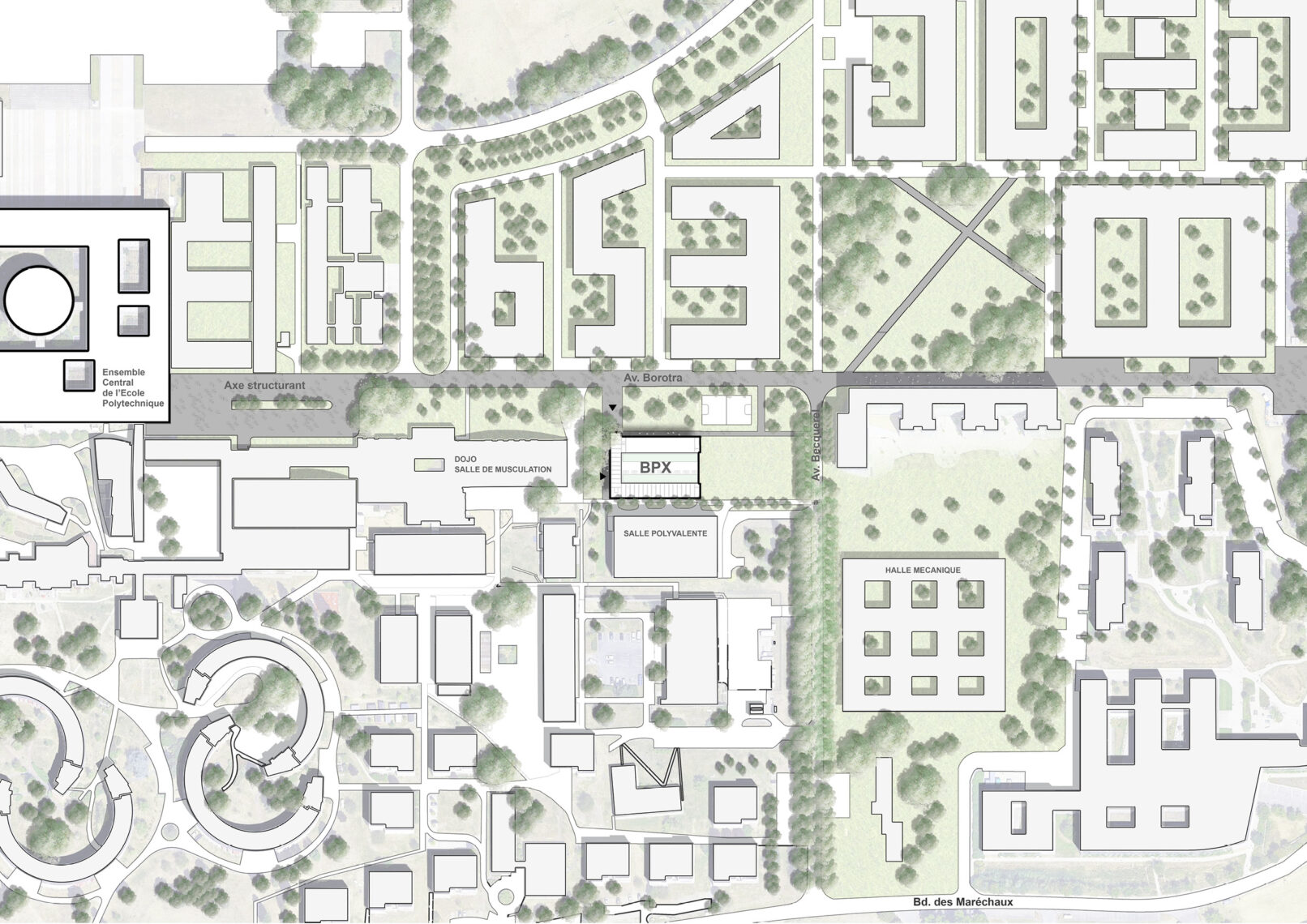 Pensé pour être monté en un temps record et répondre aux besoins pédagogiques actuels (3 200 m²), le projet s’inscrit dans les engagements climatiques de l’École Polytechnique. Il est conçu pour évoluer dans le temps, avec une partie de ses composants démontables et réemployables.