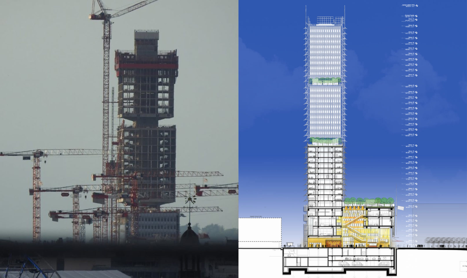 Ancienne architecte associée de l’agence RPBW où elle a collaboré de 2016 à 2023, Noémie Aureau a été impliquée dans le projet pendant les deux dernières années de la phase de construction jusqu’à la fin des travaux et son ouverture officielle au public en 2017. Durant cette phase de chantier, elle était l’architecte en charge du suivi tous corps d’états intérieurs de l’immeuble de grande hauteur (30 étages, 60.000m2 de superficie totale comprenant 1500 bureaux privés de juges, 3 suites de bureaux de prestige, bibliothèque des juges, cafétéria du personnel, salles de réunion, salles de crise, salles de réunion Faraday).