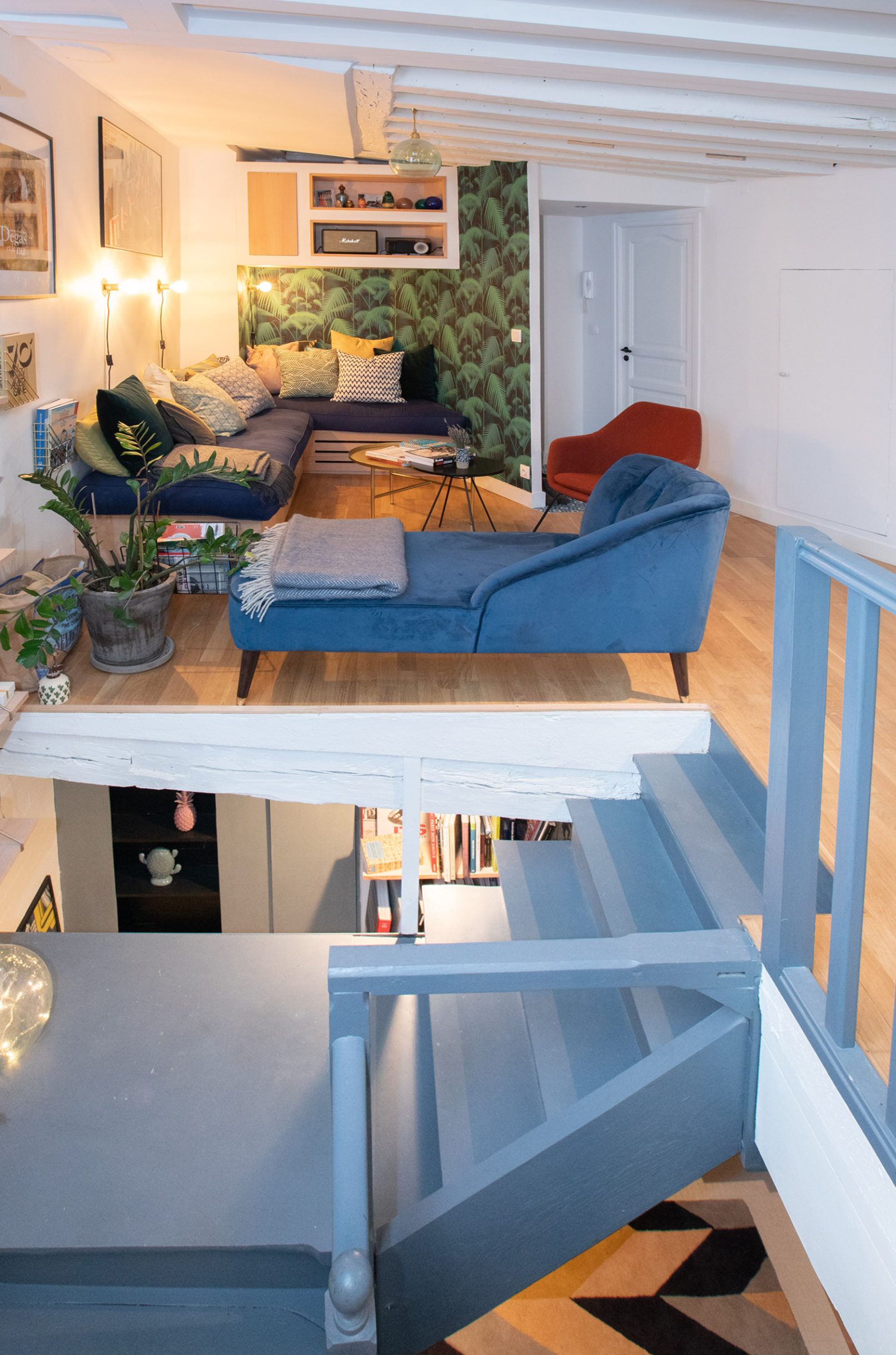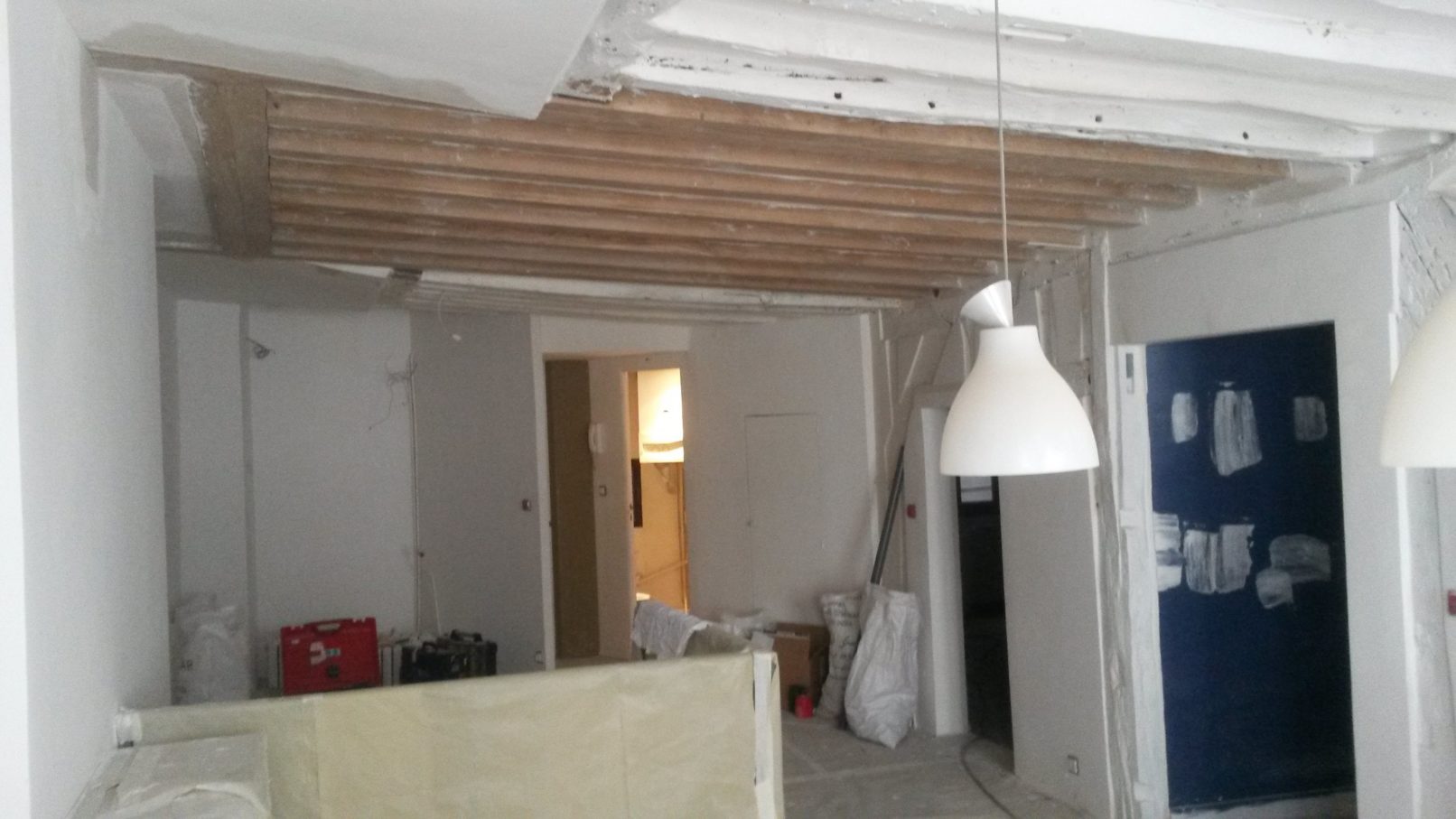 Situé dans l’un des plus anciens immeubles de la rue Saint-Denis à Paris datant du XVIIIème siècle, cet ancien atelier de confection en duplex a été entièrement rénové en un logement familial chaleureux et fonctionnel. Cette rénovation intérieure de l’appartement a été menée de bout en bout en parallèle de la rénovation lourde de sa structure porteuse à pans de bois (réfection des façades bois enduites de plâtre, changement des solives et des poutres abîmées des planchers et reprise des murs porteurs à pans de bois) et des divers réseaux (eau, électricité, gaz) qui avaient été amenés de façon chaotique dans les parties privatives de l’immeuble au fil du siècle précédent.